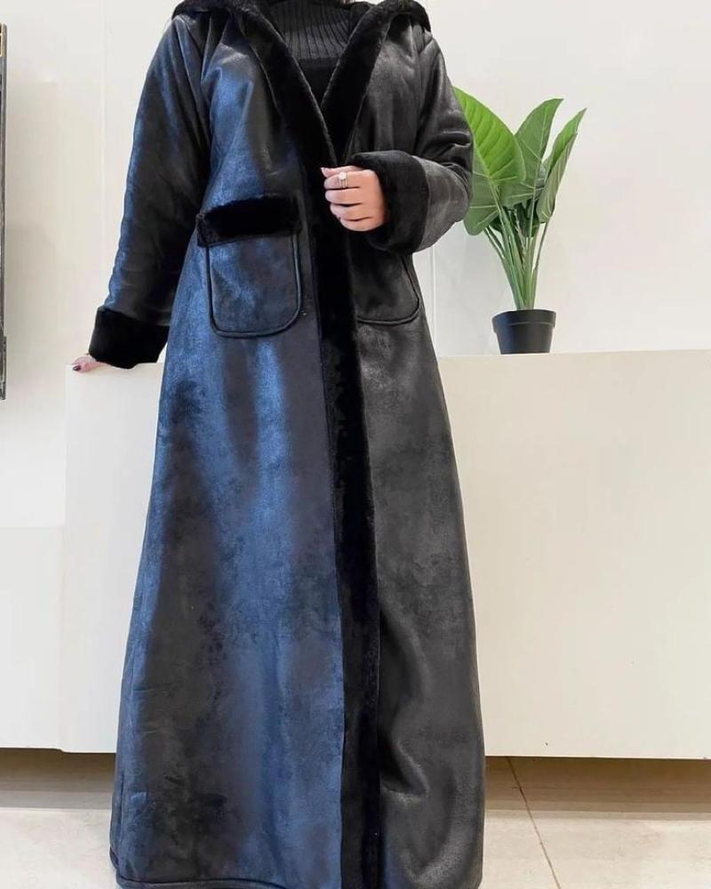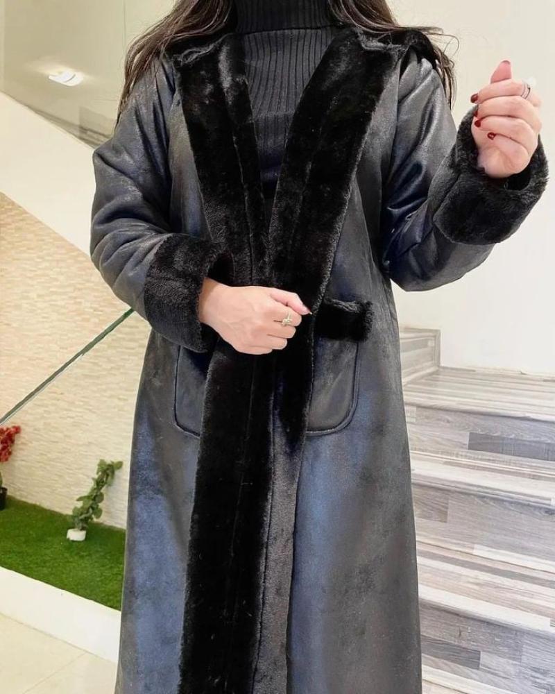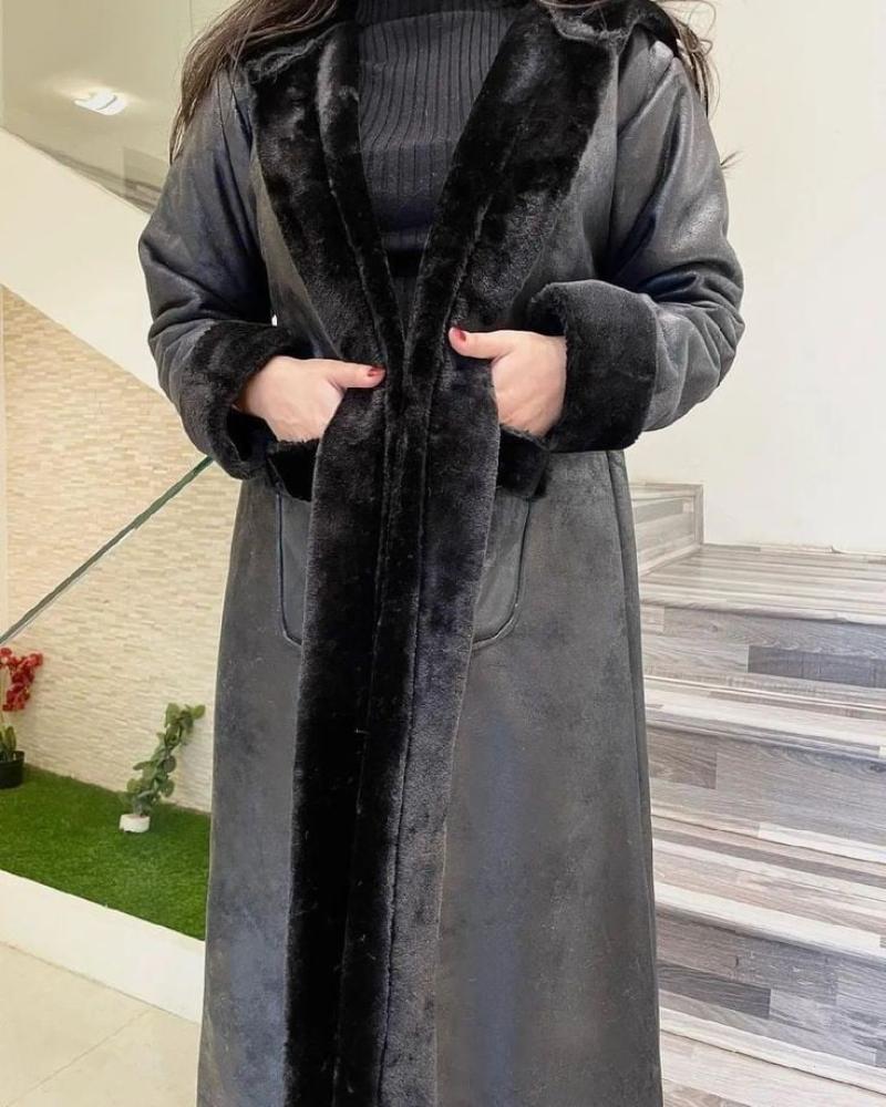فروة سوداء مخملية مبطنة بالفرو - للأناقة والدفء